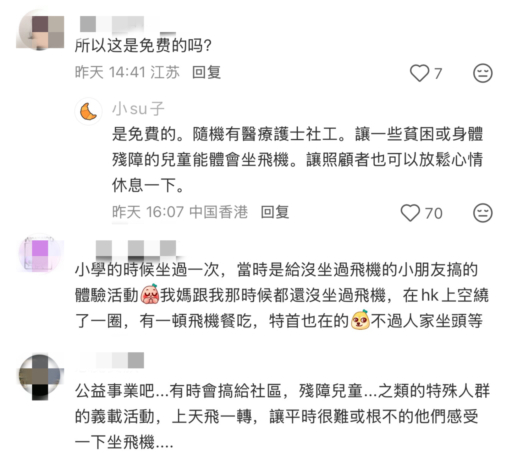 网友谈论截图。 更有网友表白,不用太甚爱戴喷鼻港的同伙,新疆比来也推出了近似的公益名目,出坐过飞机的小伴侣一样能够请求参与,置信那也会是1次十分棒的人死领会。
